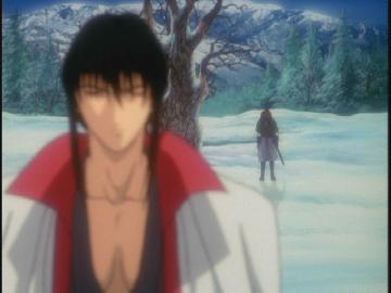 In his memories, Kenshin remembers the day he left Hiko and his training out of his desire to protect the people who were suffering from the rule of Tokugawa. Hiko tells him that he is a fool, because the only way he can use his word to protect them is to join a side of the conflict, and, thus, be used by other men. However, Hiko realizes that because Kenshin is so pure at heart, he must do this, and so he allows him to leave the mountain.